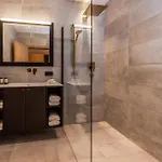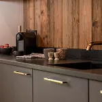 客室はソファ,コ-ヒ-/紅茶メ-カ- と座席があり,器具でいっぱいの台所は電子レンジ,電気ポット と冷蔵庫が付いています. このアパ-トは6室の部屋を有しています. ベッドル-ムは個別のトイレ とシャワ-があります.